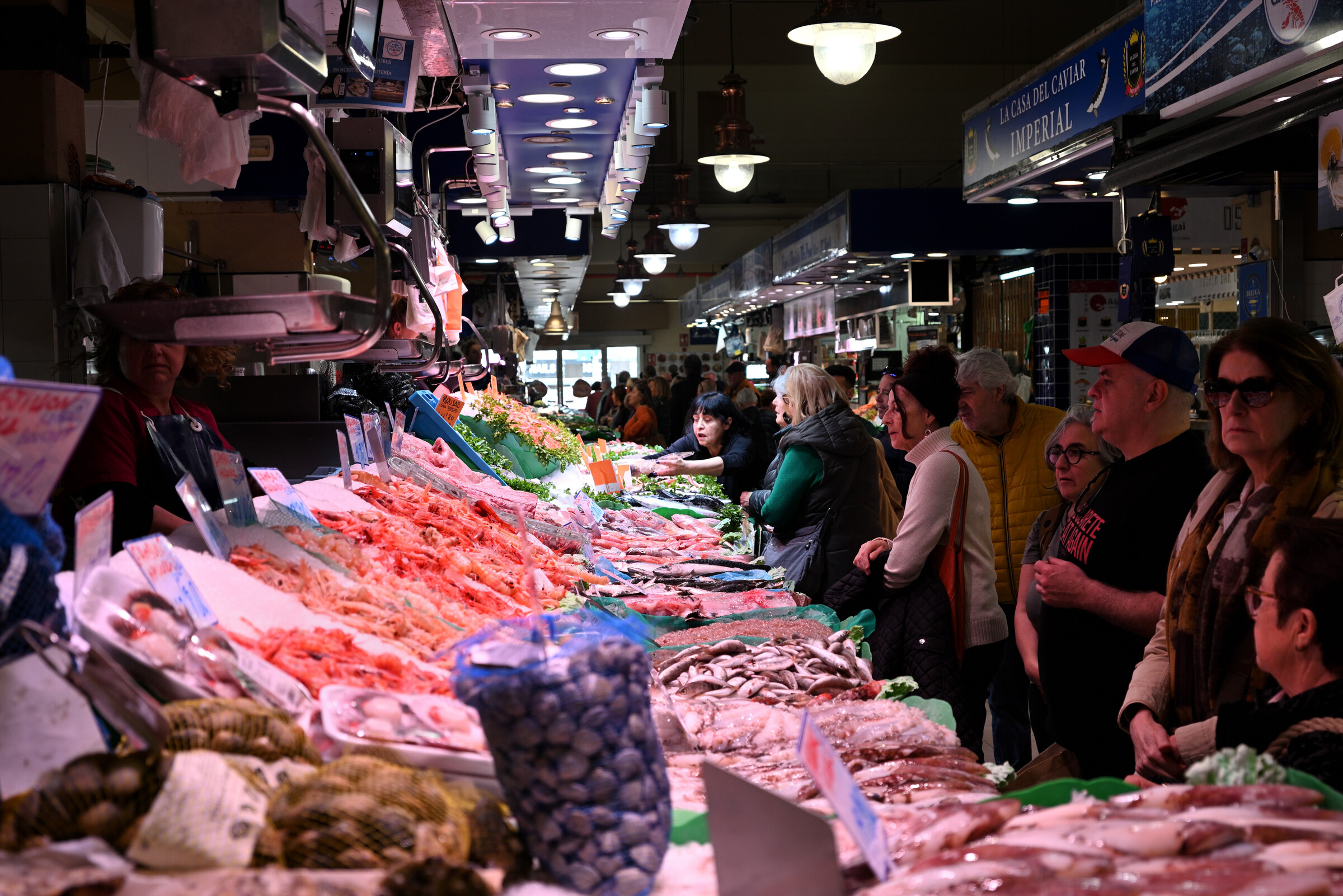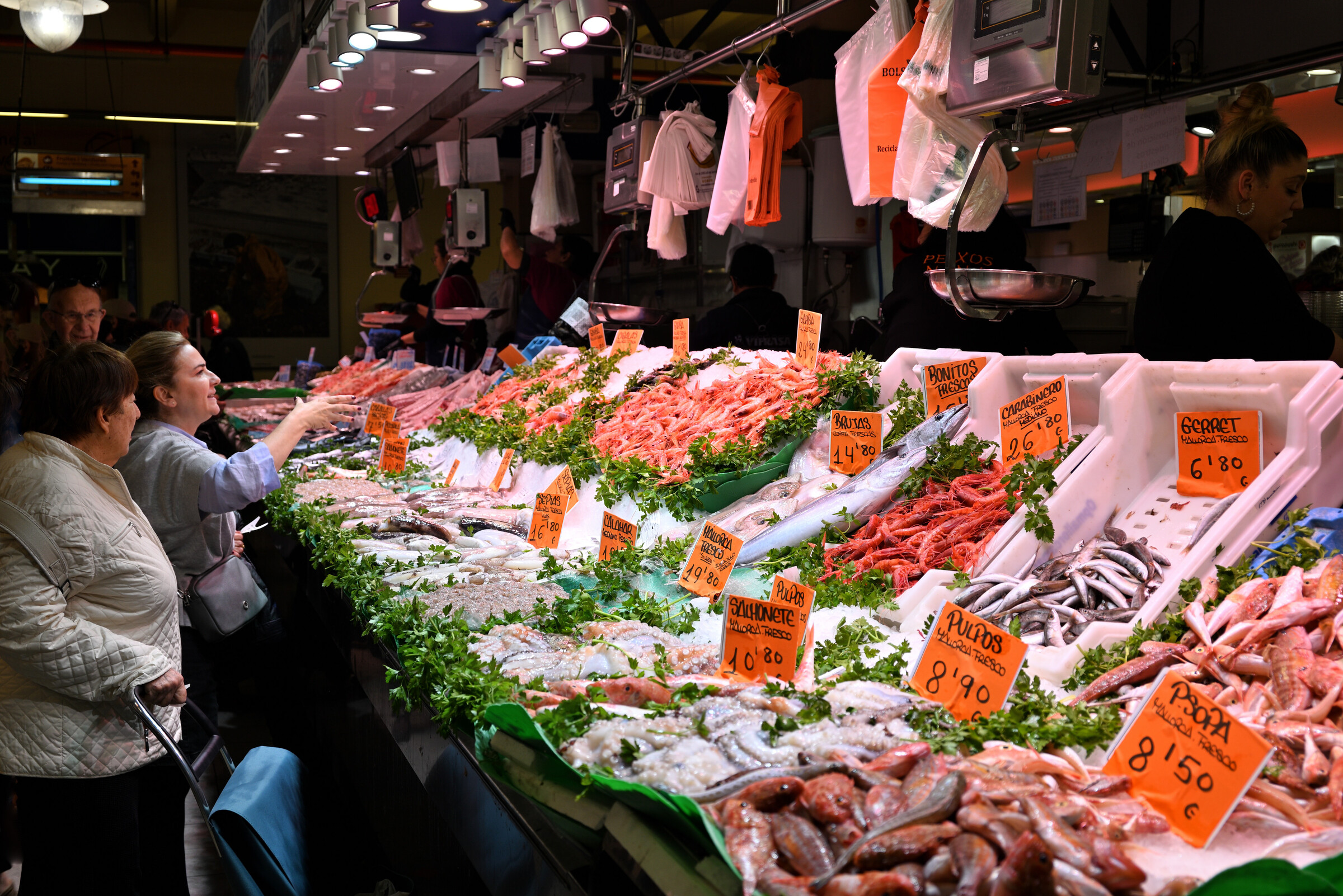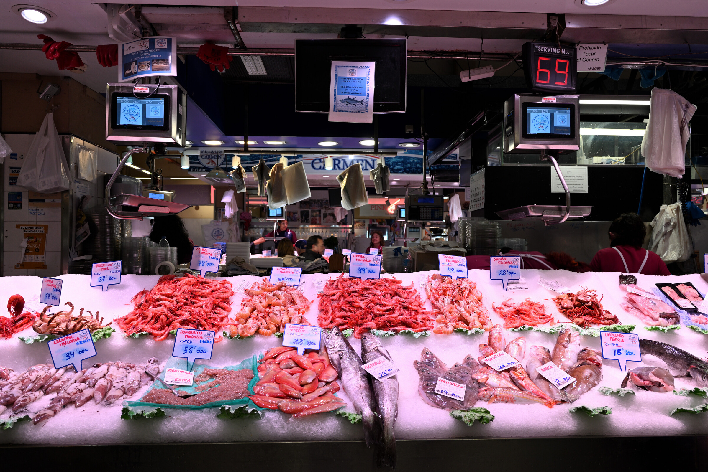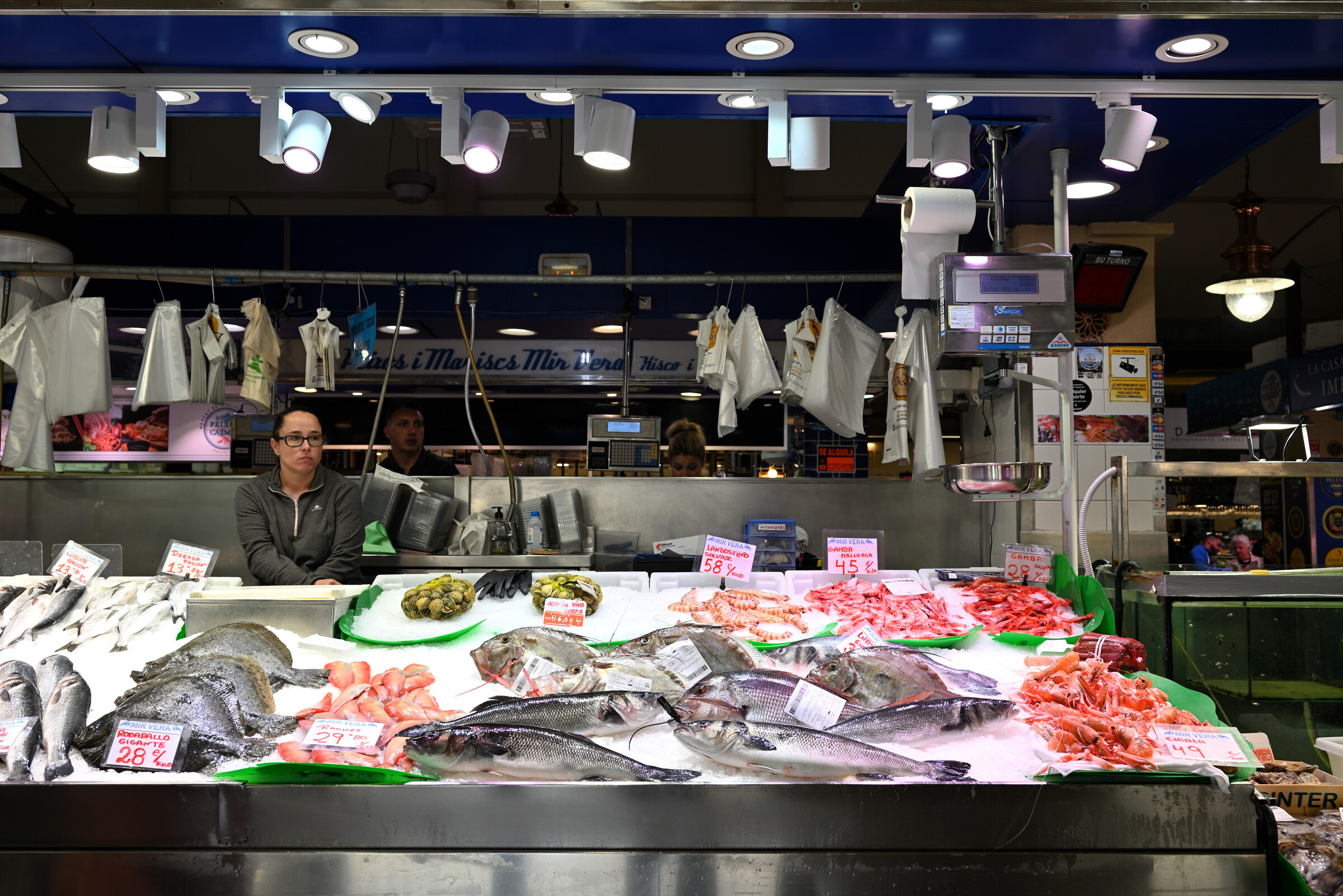 - Verkaufsstand mit Fischen und Garnelen
